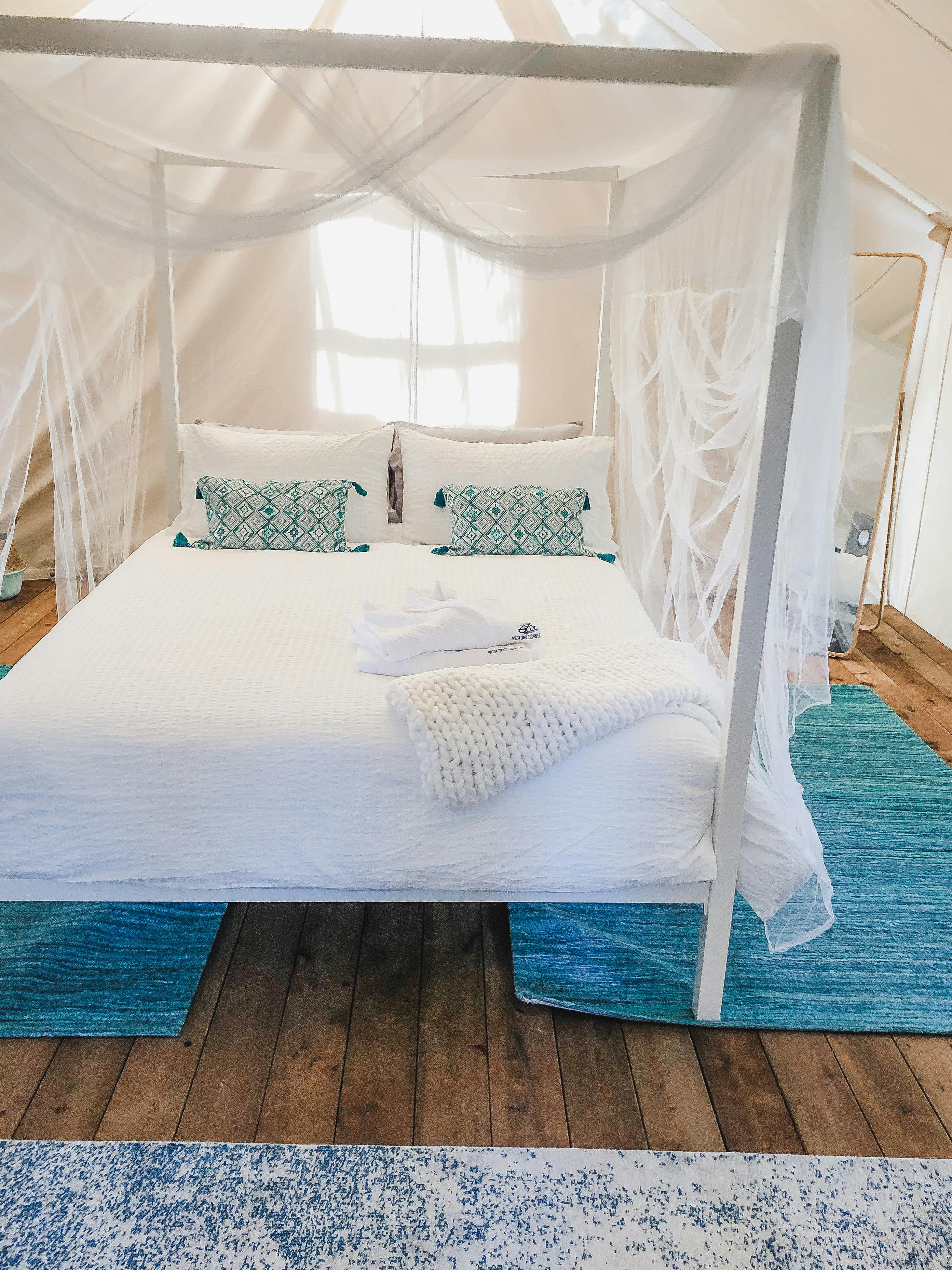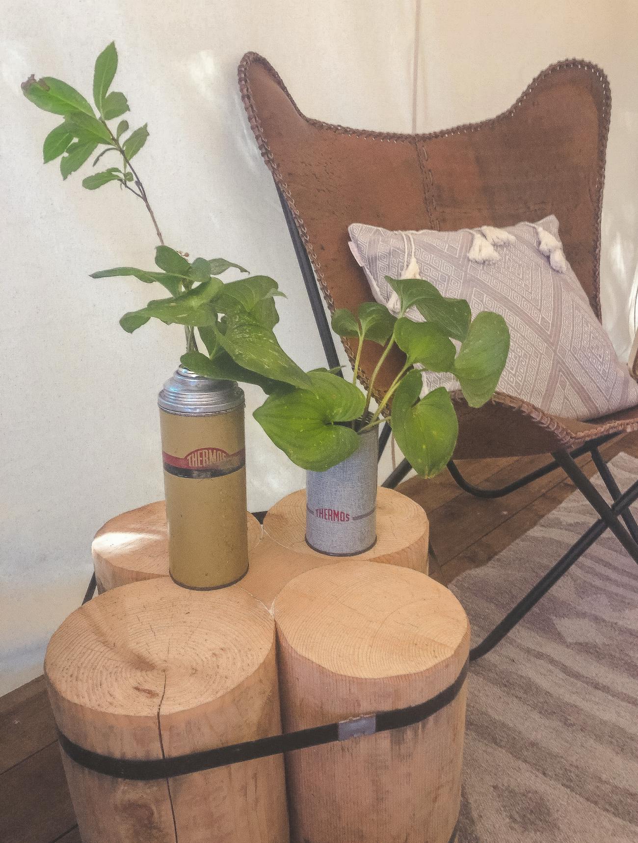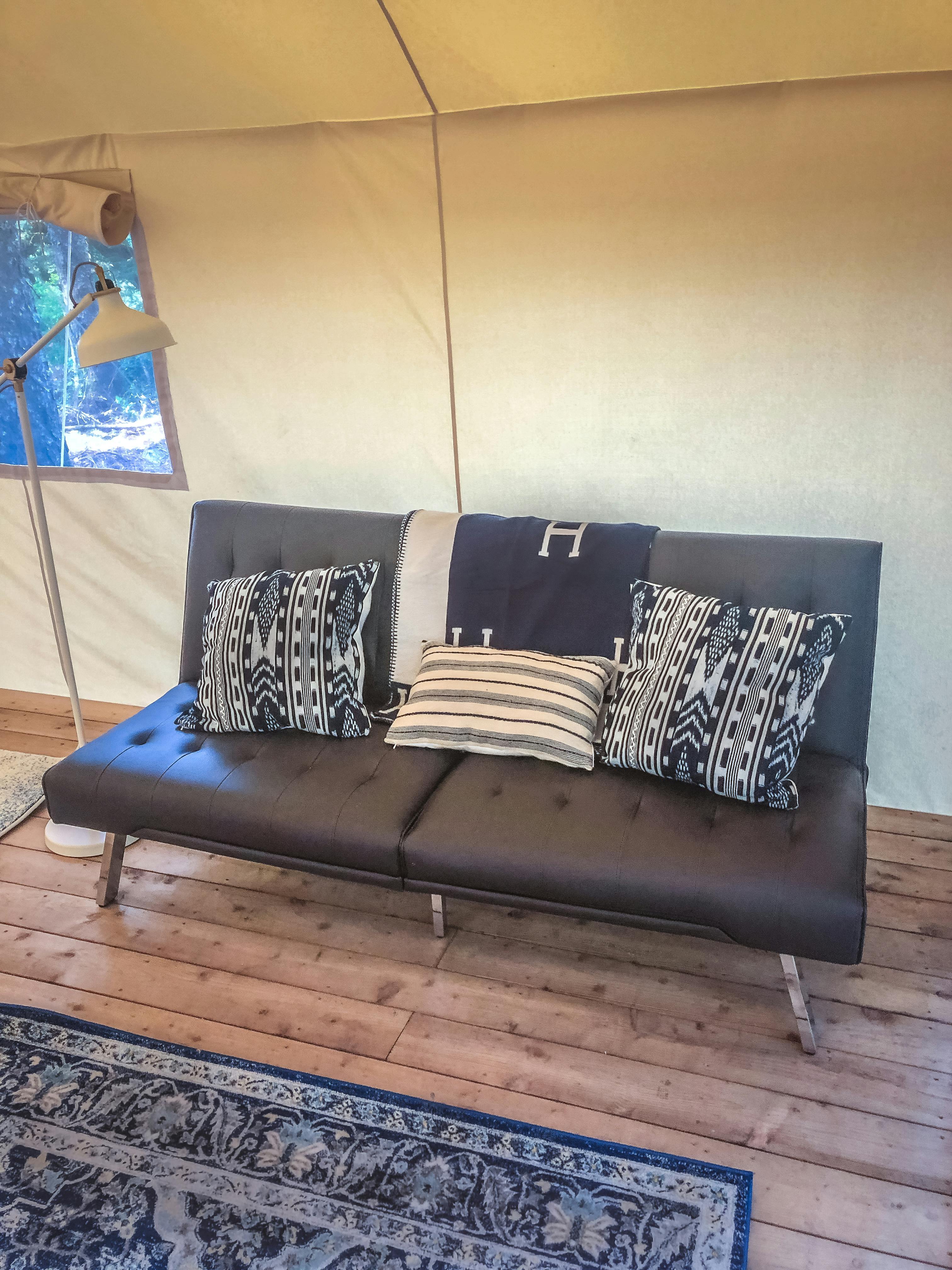 This suite is equipped with a private ensuite bathroom inside your tent which includes a shower, sink, and flushing toilet. A Dyson heat/cool fan will keep you warm at night or cool during the day.