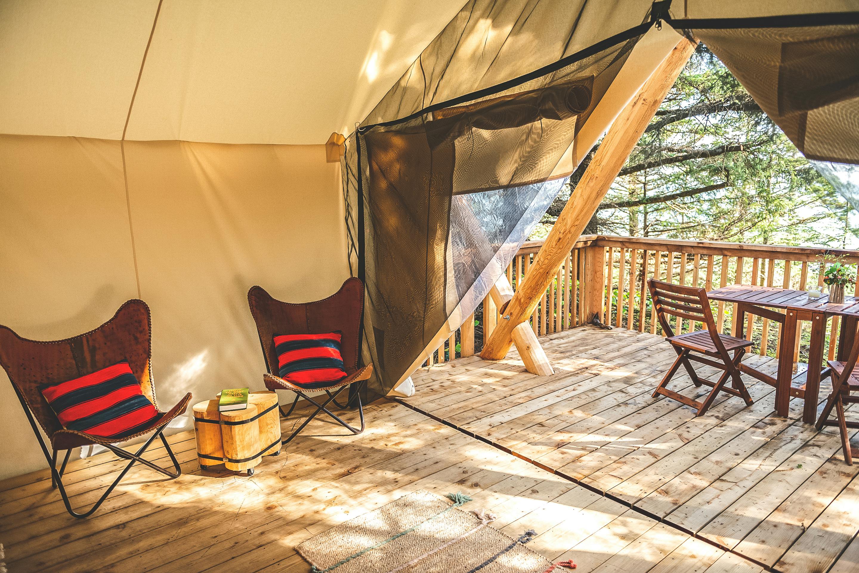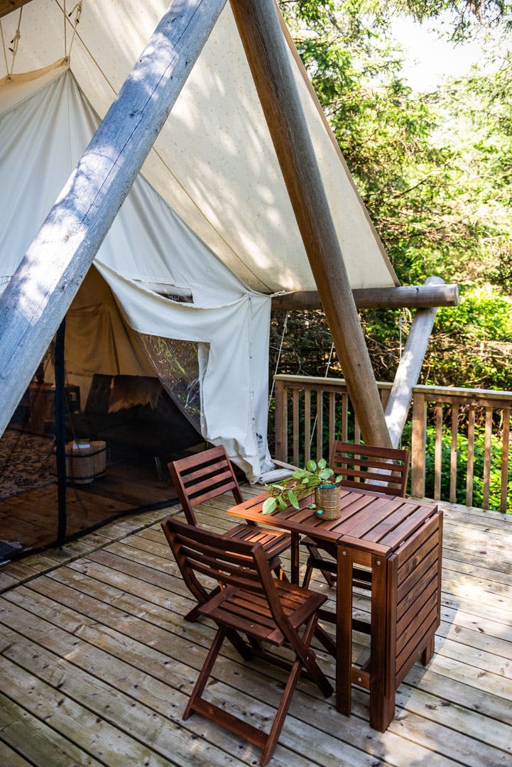 All 6 of our 320 sq ft rain forest tents are accessible by our timber boardwalk through the salal underbrush. Forest bathe or enjoy the stargazing possibilities from your 120 sq ft rain forest terrace. Truly magical. Nature Therapy.