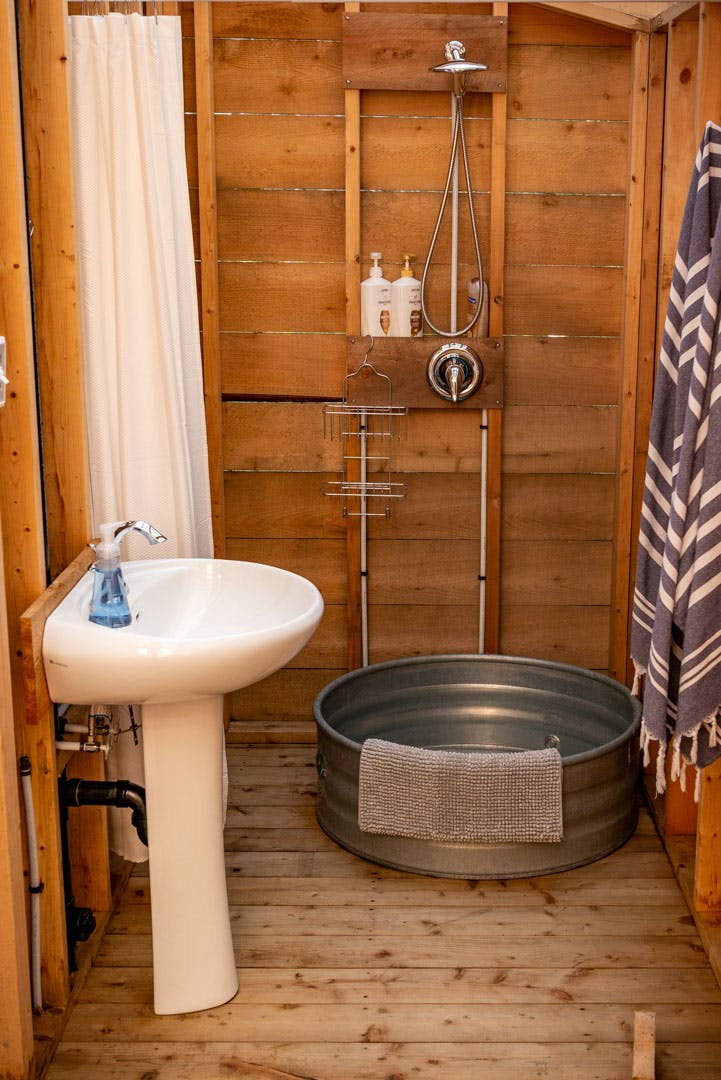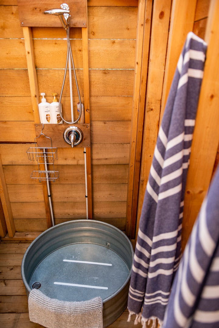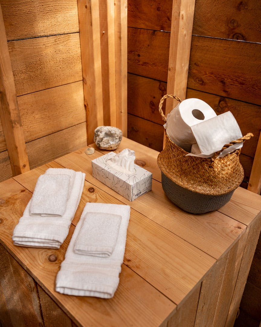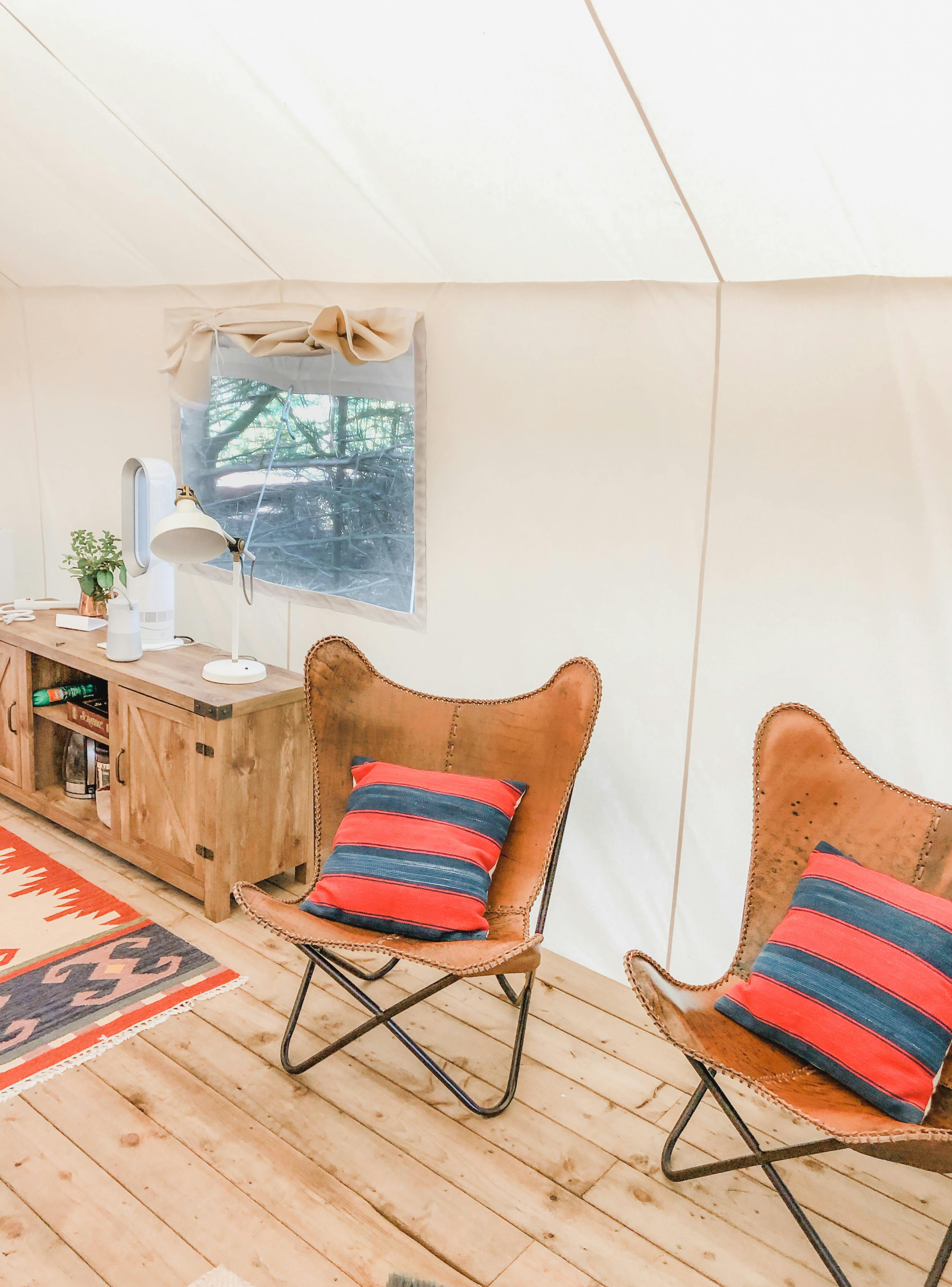 This suite is equipped with a private en-suite bathroom inside your tent which includes a shower, sink, and flushing toilet. A Dyson heat/cool fan will keep you warm at night or cool during the day.