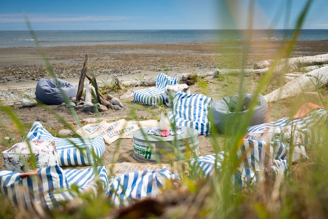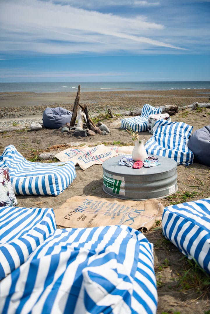 Got a special event? Ask us about our beach picnic setup—complete with a driftwood table centerpiece, comfy cushions, and everything you need for an unforgettable dining experience by the shore (please contact us for price info).