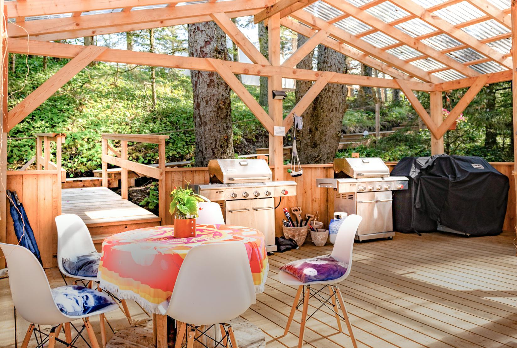 - BBQ Deck: Features 4 BBQs with side burners, an Ooni pizza oven, and oversized seafood pots for crab boils. We also offer BBQ packs filled with locally sourced, wild seafood and yummy local sausages —perfect for grilling up a delicious feast! Plus, we sell pizza bases and sauce so you can create your own pizza masterpiece on our newly added pizza oven while enjoying the fresh ocean air. The balcony deck also comes fully equipped with all the things you could possibly need while grilling - tongs, trays, skewers, crab crackers, paper towel, oil spray, and more.