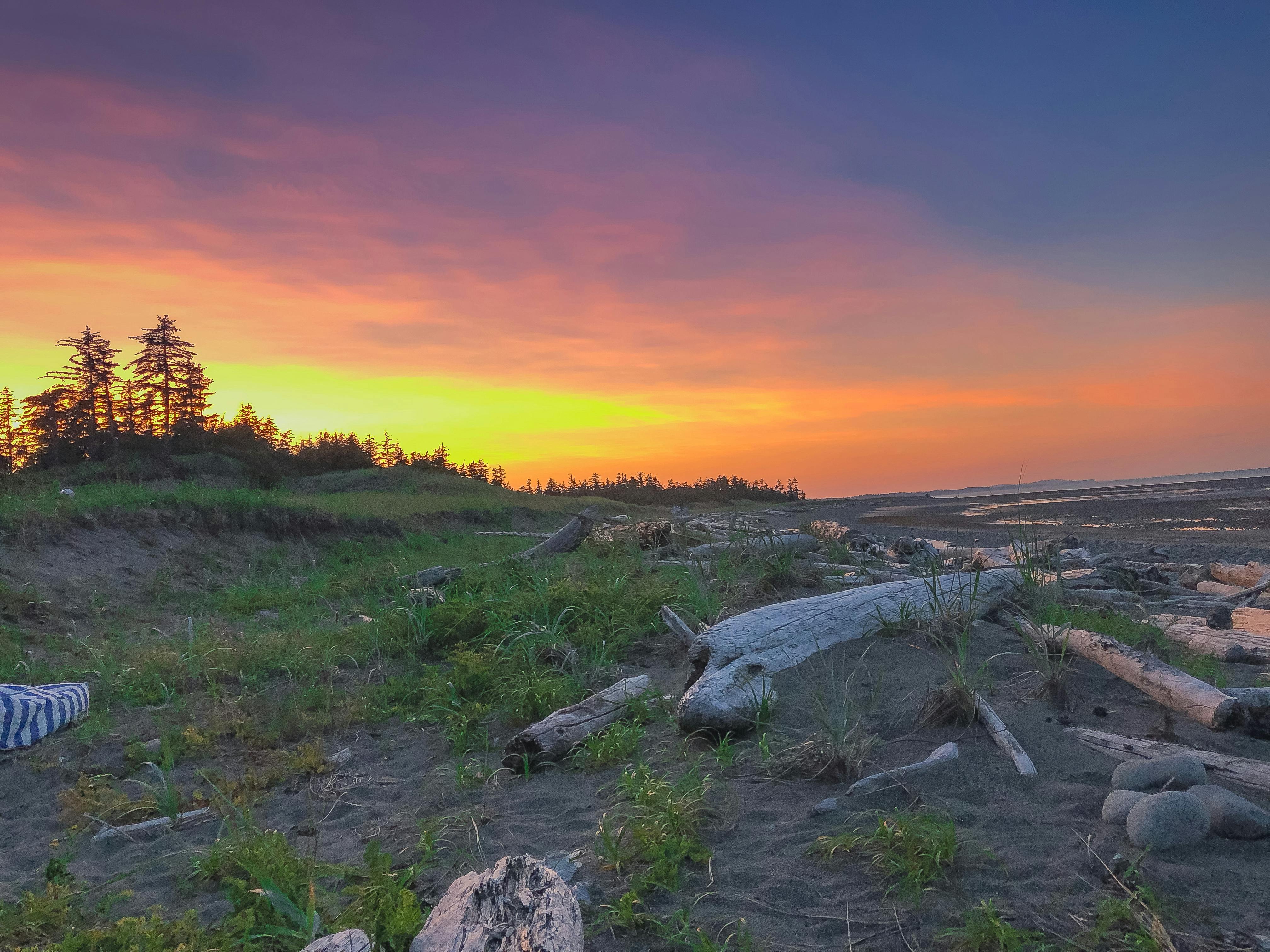 With zero light pollution here on Haida Gwaii Glamping Co.'s glorious acreage, stargazing is truly magical—whether from our cedar spa tub or wrapped in one of our cozy blankets by a crackling beach fire.