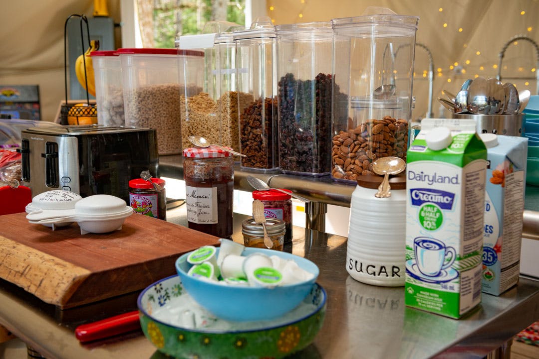 - Tea & Coffee All Day: Help yourself to tea and coffee whenever you like—it’s always available in the dome (as well as your tent).