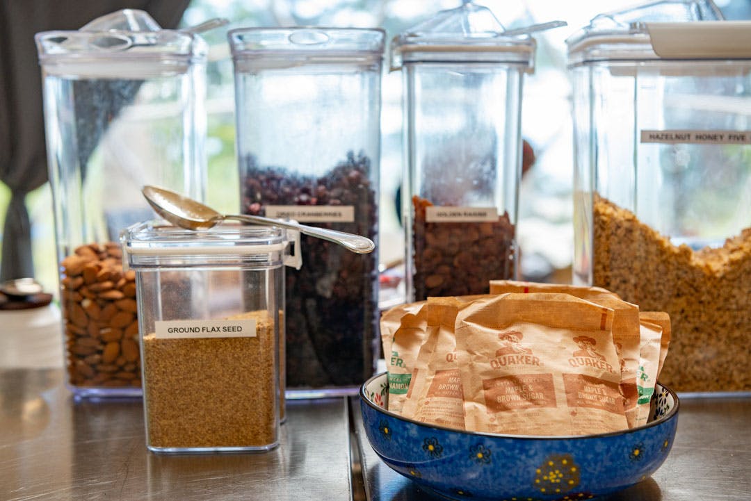 Every morning, we provide a simple complimentary continental breakfast and a mini smoothie station - this is served in the Social Dome